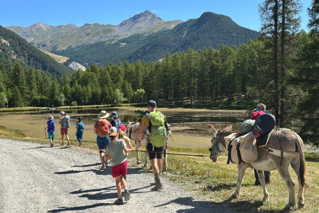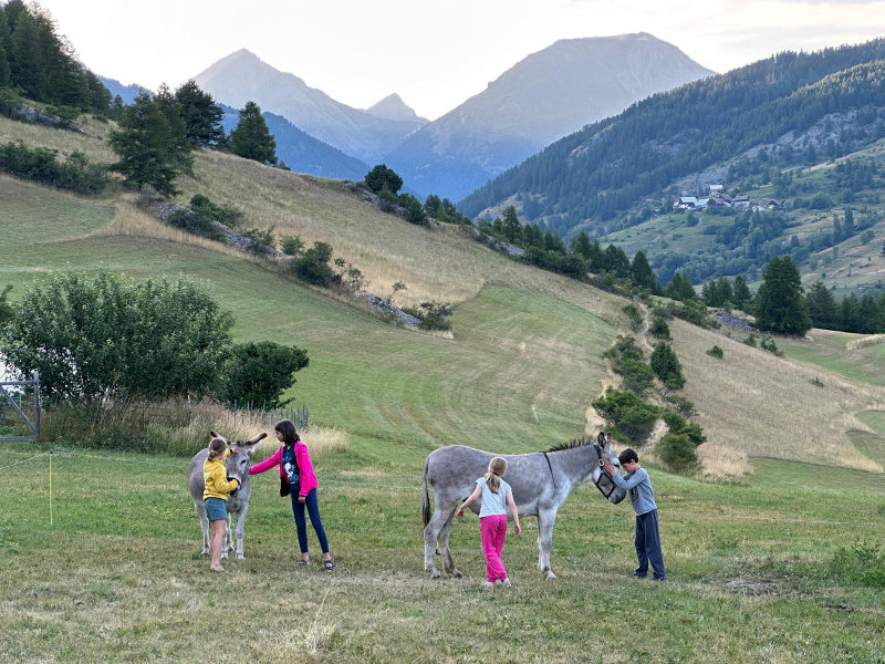 According to regulations, your dog can accompany you on the trails of the Queyras Regional Natural Park provided that it is kept on a leash. After a period of adaptation and mutual observation, he will cohabit with the donkeys. However, it must be taken into account that this does not simplify the organization of your hike because it is sometimes difficult to manage everything at the same time: the donkey or donkeys, the children, the luggage, the map to follow the right path and... the dog ! Especially since it is sometimes necessary to keep away from the donkey with the dog on a leash and that there can be problems with the dogs that protect the flocks of sheep in the pastures. Dogs cannot sleep in the accommodation and, in general, a shelter is provided for them outside. Remember to let us know if you plan to hike with a dog.